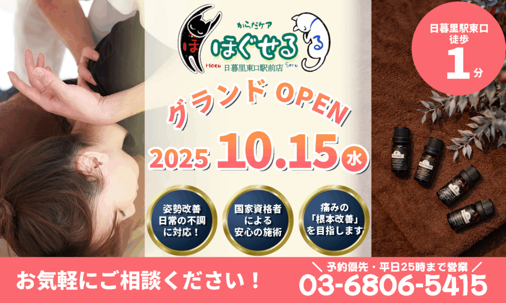 ぜひ「ほぐせる 日暮里東口駅前店」で、明日への活力をチャージしていってください。
